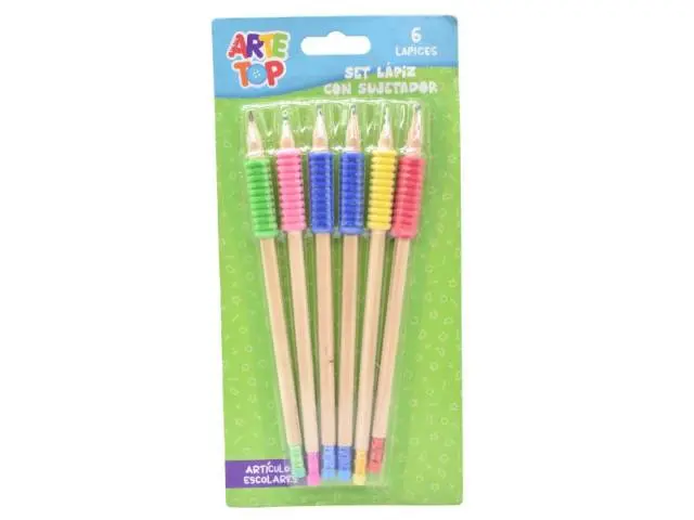 Lápices de madera con sujetador de goma.Contiene: 6pcs.En blíster.Medidas del empaque: 25x12cm.